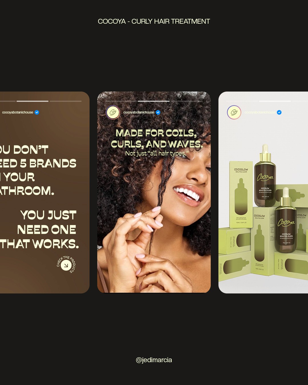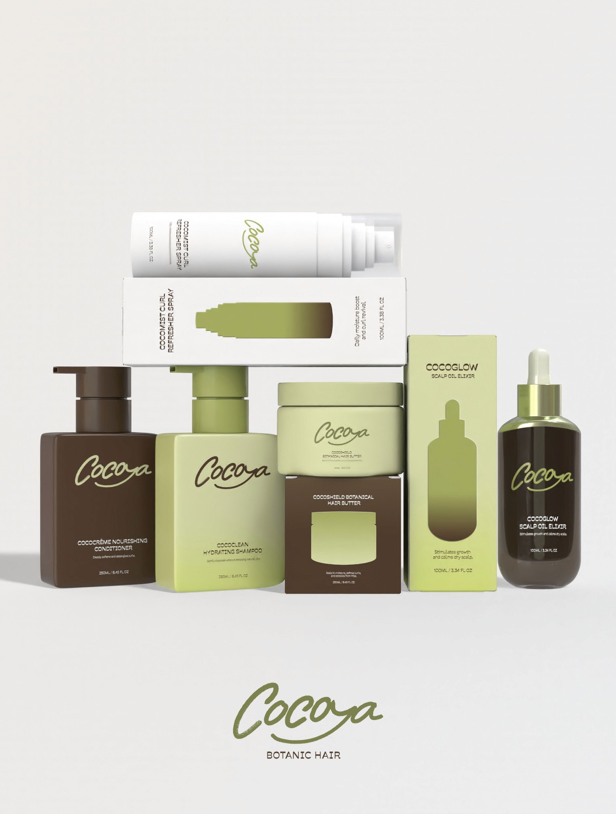 Cocoya is a tropical-inspired haircare line focused on curly, coily, and wavy textures. The brand needed a strong identity to stand out in a space that often overlooks textured hair. The work included brand positioning, visual identity, and packaging across the full product range.