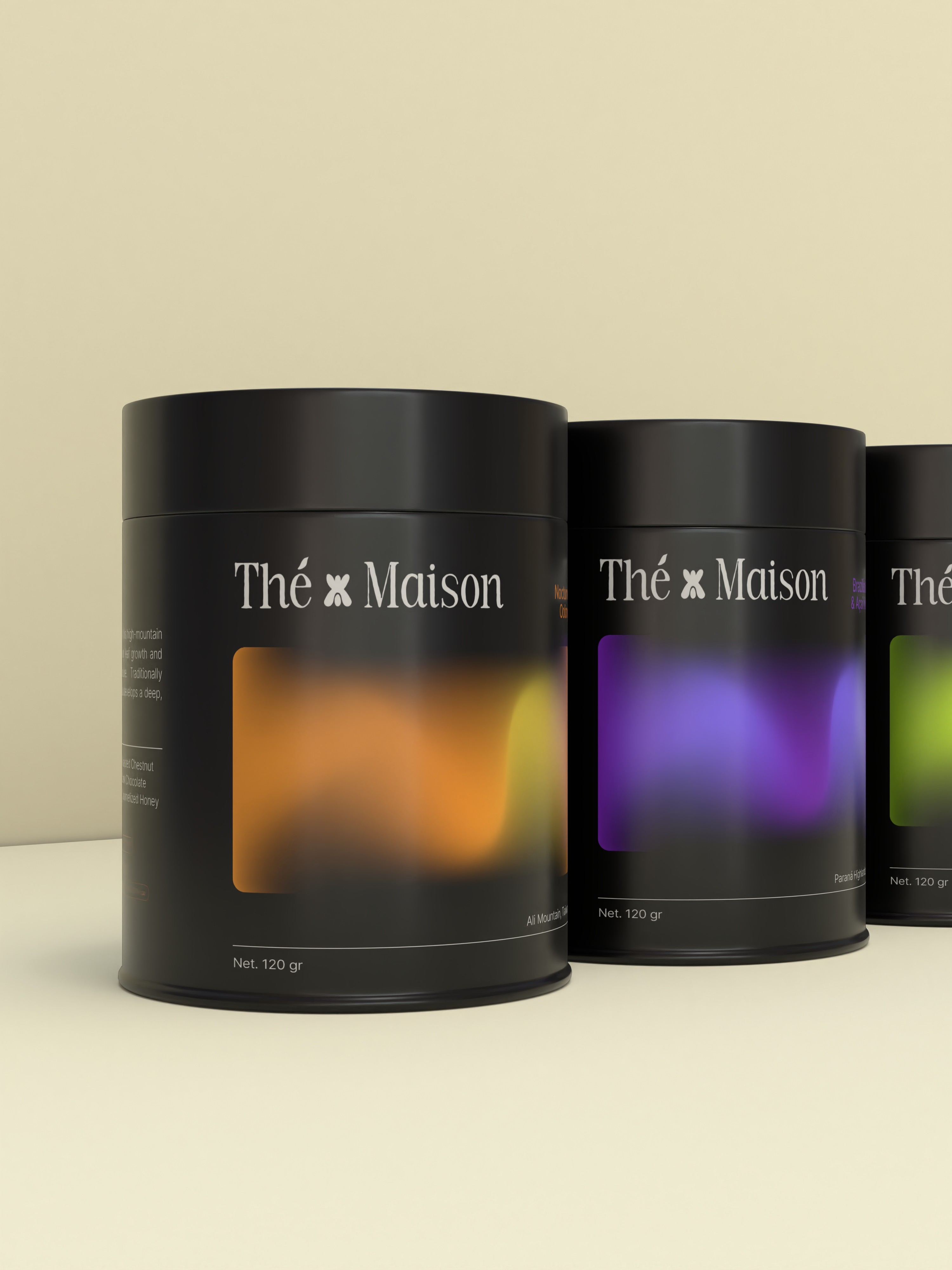Thé Maison is a modern tea brand built on heritage and global influence. The packaging was designed for a full line of teas, each one tied to a specific origin—from Taiwan’s misty Ali Mountains to Brazil’s bright highlands. The goal was to turn a daily tea moment into something more visual and sensory, without overcomplicating it.
